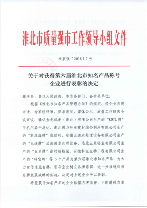 熱烈祝賀我司產(chǎn)品“五星牌”高檔鋁粉漿獲得第六屆淮北市知名產(chǎn)品稱號!