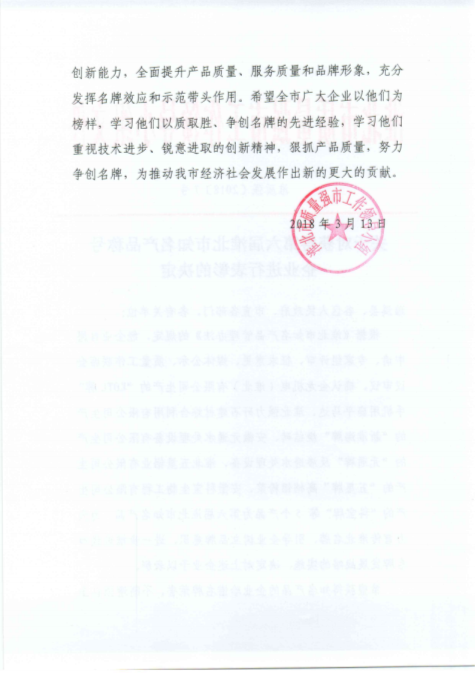 我司將珍惜名牌榮譽、全面提升產(chǎn)品質(zhì)量、服務(wù)質(zhì)量和品牌形象,充分發(fā)揮名牌效應(yīng)和示范帶頭作用。將一如既往地堅持以高質(zhì)量的產(chǎn)品,合理的價格及優(yōu)良的服務(wù)來回報廣大用戶對我們的支持與信賴。