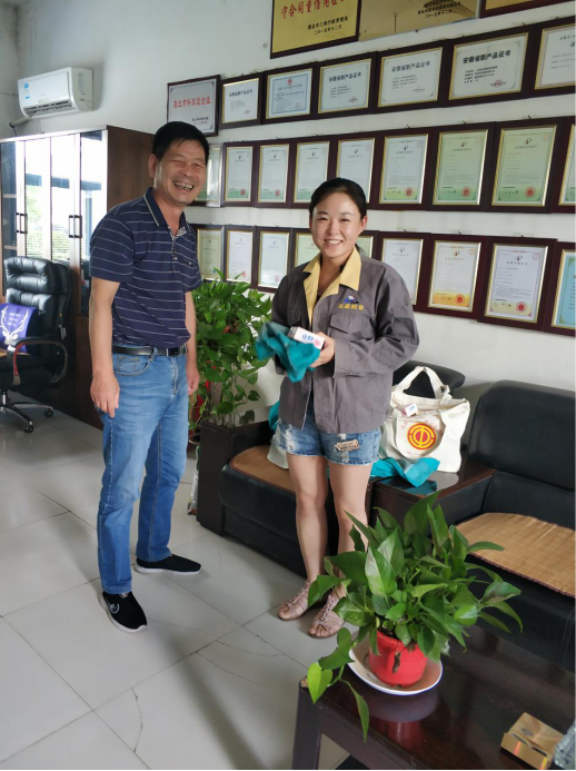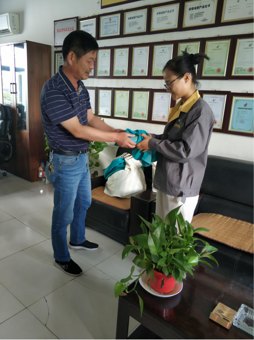 開發(fā)區(qū)一行首先看望了淮北五星鋁業(yè)的一線工作人員、行政后勤員工、保潔工人和站崗執(zhí)勤的門衛(wèi),將毛巾、肥皂、西瓜等納涼物資一一送到大家的手上。
