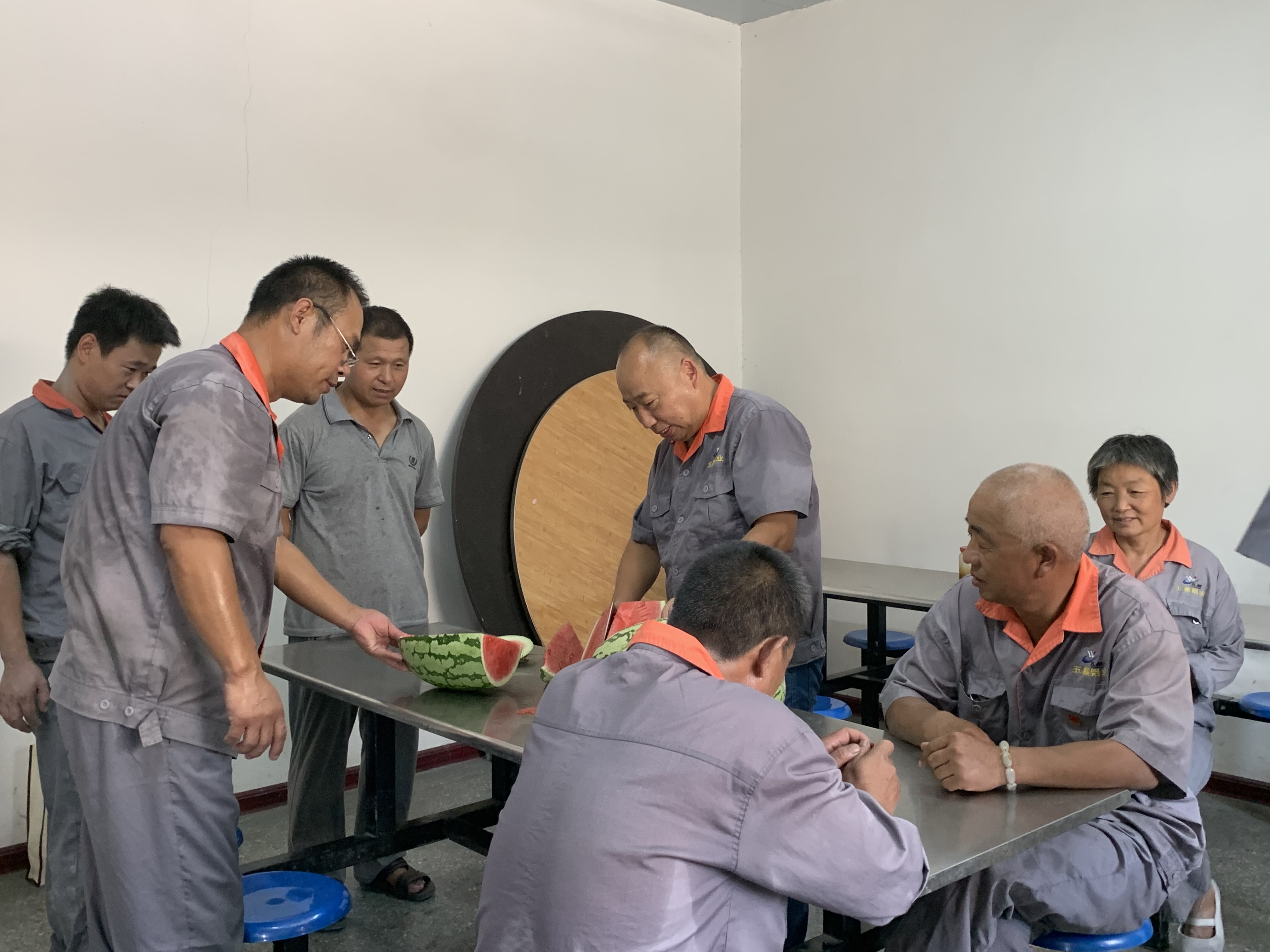 公司總經(jīng)理劉建民、副總經(jīng)理孟建君、牛海燕為不畏高溫酷暑、堅(jiān)守在生產(chǎn)一線的廣大員工送上西瓜、花露水等防暑降溫物品。